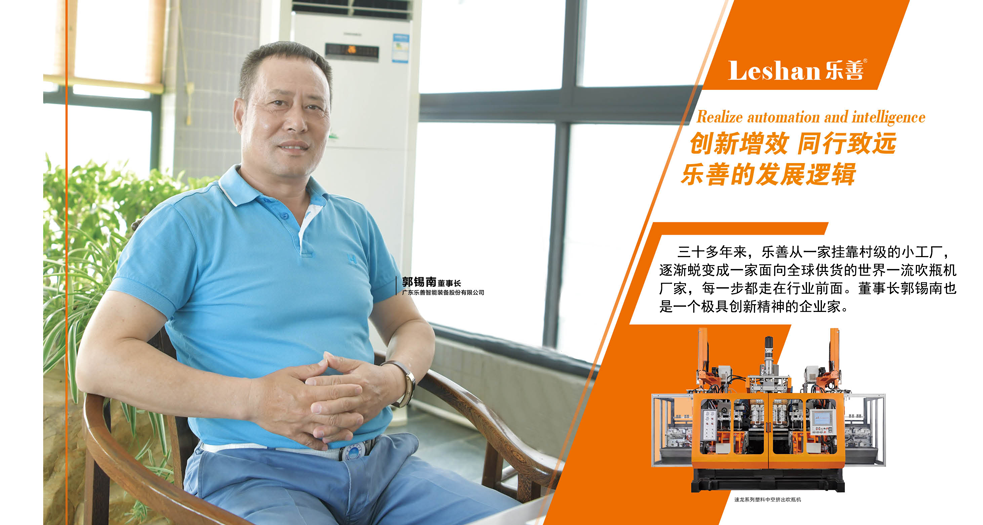三十多年來,樂善從一家掛靠村級的小工廠,逐漸蛻變成一家面向全球供貨的世界一流吹瓶機廠家,每一步都走在行業前面。董事長郭錫南也是一個極具創新精神的企業家。從產品打造,到戰略布局,樂善身上被早早打下中國吹瓶機領域的“創新”標簽,時至今日,樂善已是吹瓶機行業內當之無愧的龍頭企業。