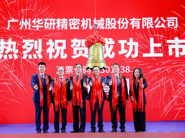 2021年12月15日9時25分,伴隨著上市寶鐘清脆的敲擊聲,廣州華研精密機械股份有限公司(證券簡稱:華研精機,證券代碼:301138)正式在深圳證券交易所創業板成功上市。