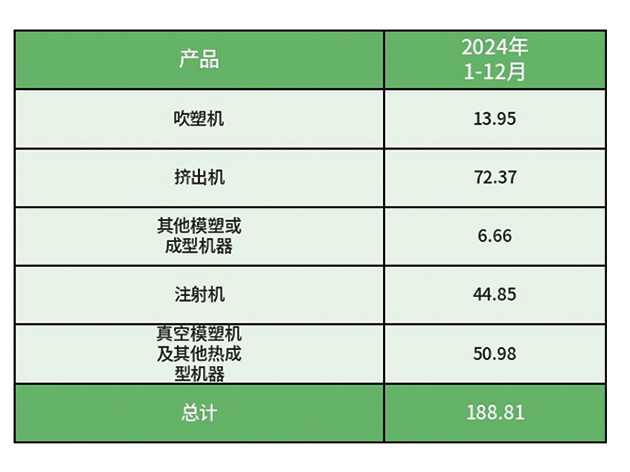 根據國家海關總署發布的數據,2025年1-12月中國五大類塑料機械(注塑機、擠出機、吹塑機、真空模塑機及其他熱成型機、其他模塑或成型機)進出口累計貿易總額632.98千萬美元,同比增長5.55%。其中12月份進出口52.9...