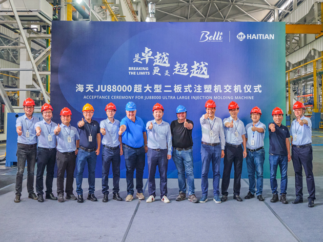 此次交付的海天JU系列8800噸超大型注塑機,額定鎖模力達88000kN,注射容量達134000立方厘米,刷新行業紀錄,實現了超大型注塑機研發制造能力的突破。