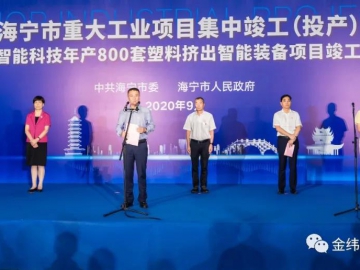9月16日,海寧市重大工業項目集中竣工(投產)暨浙江金緯智能科技年產800套塑料擠出智能裝備項目竣工(投產)儀式在浙江金緯公司隆重舉行。