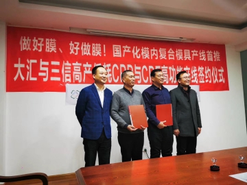 2020年1月4日,南通三信塑膠裝備科技有限公司(以下簡稱“三信”)與上海大匯塑業有限公司(以下簡稱“大匯”)簽署了高產低耗CPP與CPE高功能產線戰略合作協議。