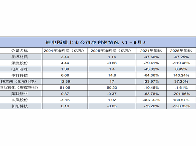 鋰電隔膜上市公司的營收情況來看,2025年1-9月行業整體發展趨勢有所好轉