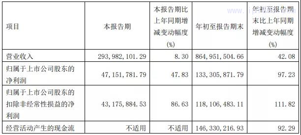 根據數據來看,2021年前三季度,公司內外銷訂單同比增長較快,主營產品產銷兩旺,生產排產緊張有序,公司營業收入同比大幅增長。