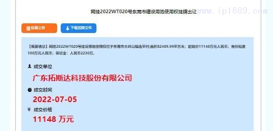 2022年7月,拓斯達智能設備總部基地項目二期123.73畝用地順利完成摘牌。