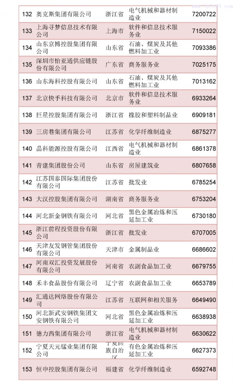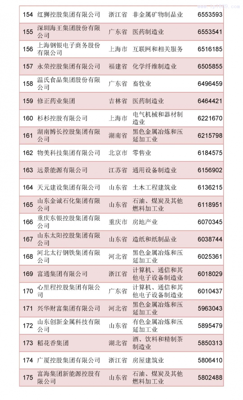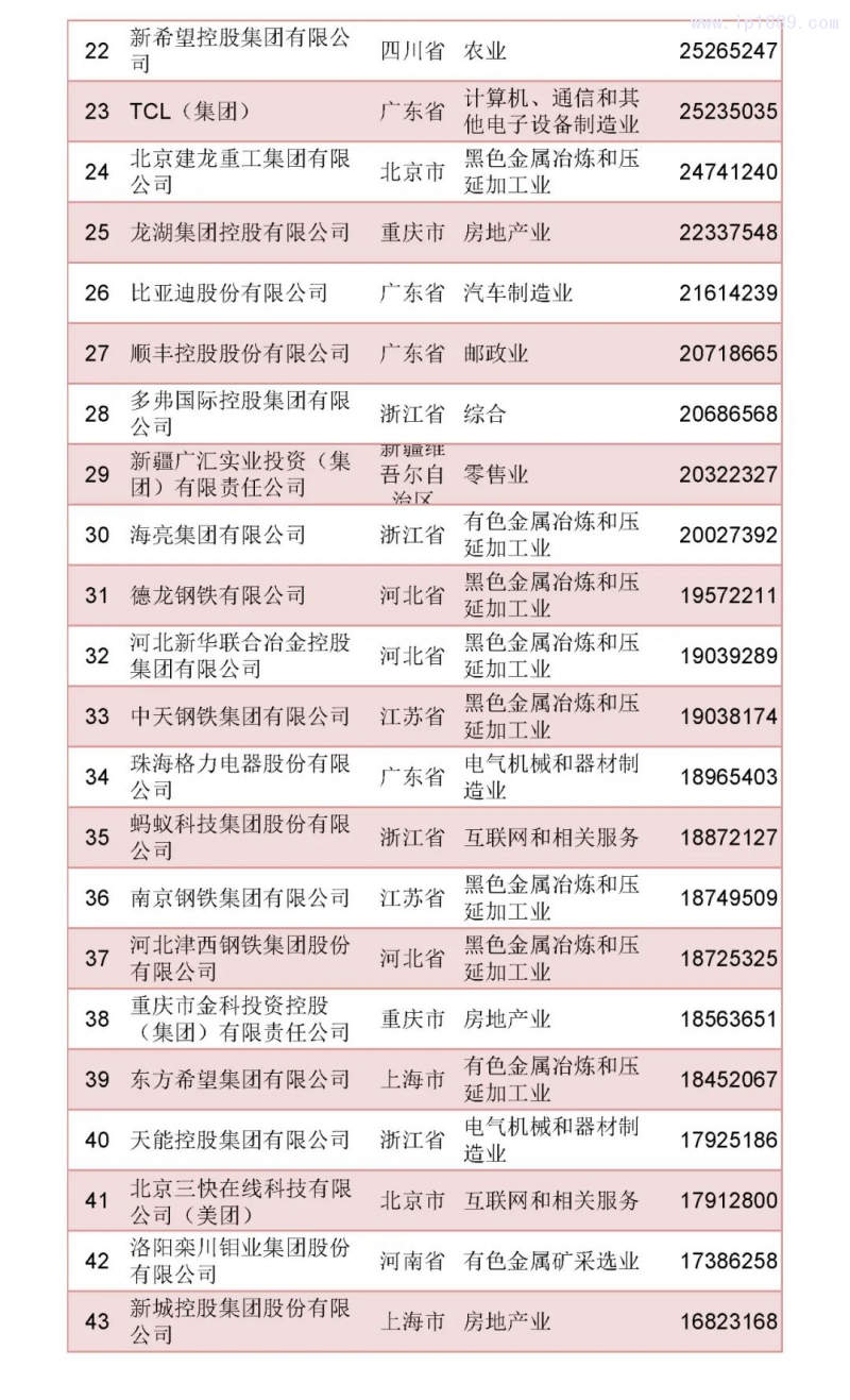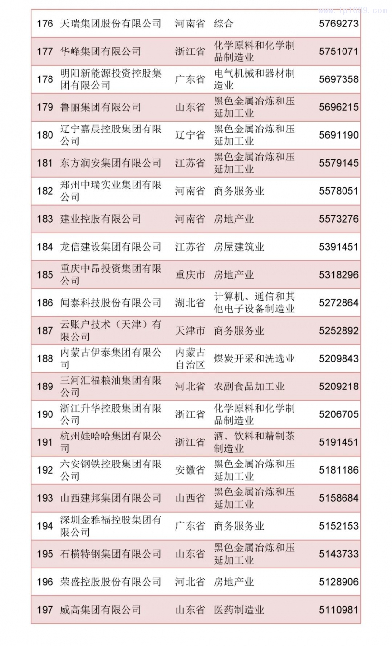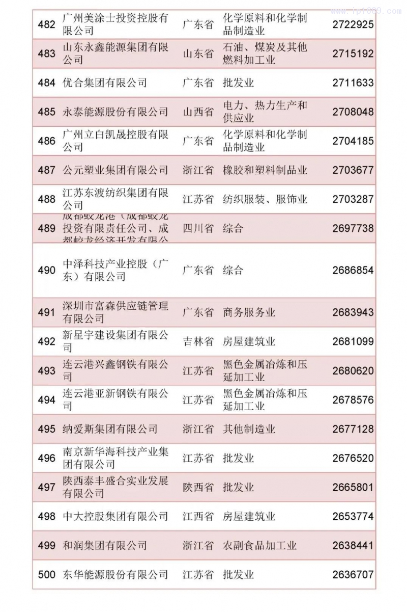 2022中國民營企業500強榜單