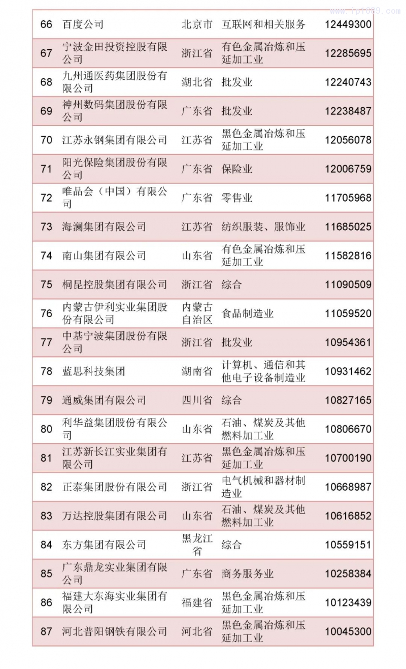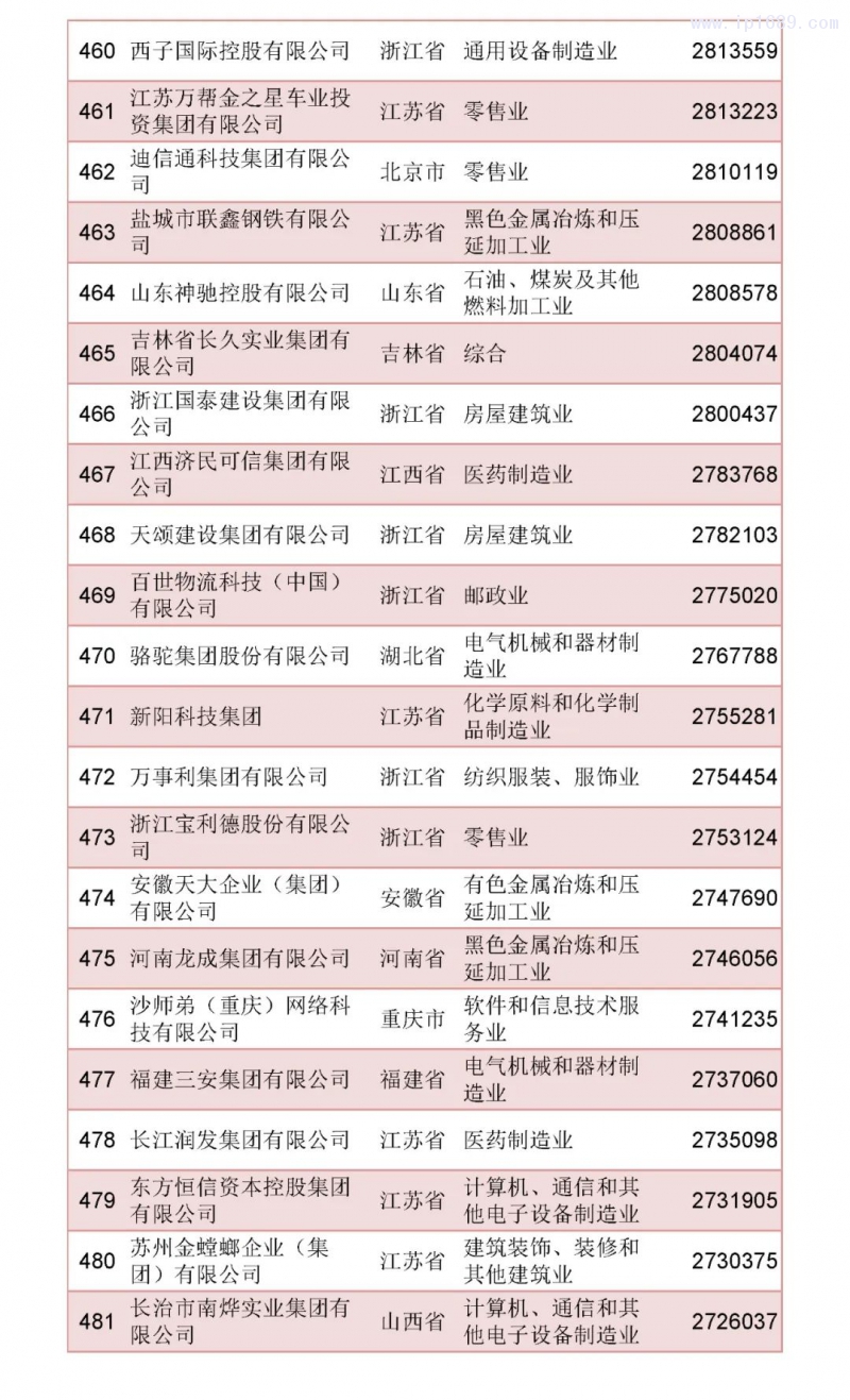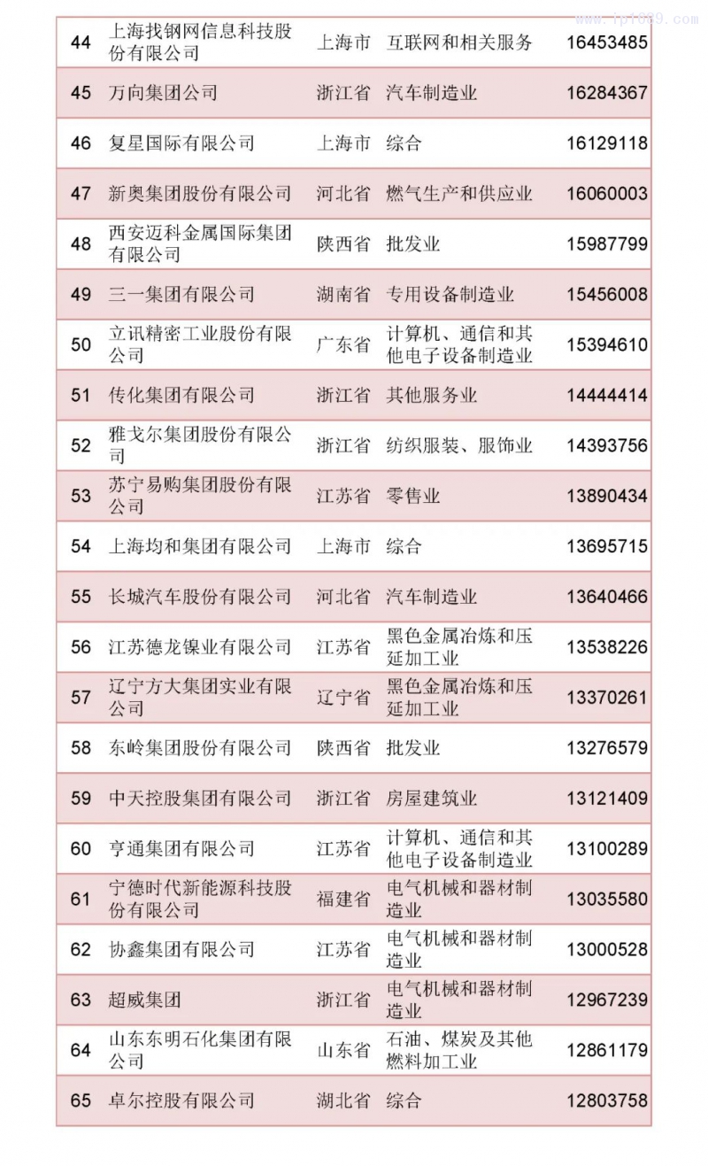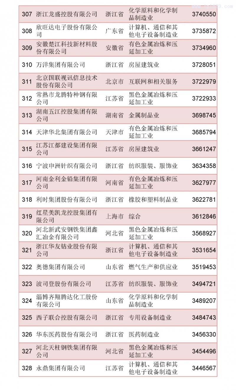 2022中國民營企業500強榜單
