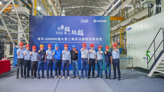 [導讀] 此次交付的海天JU系列8800噸超大型注塑機,額定鎖模力達88000kN,注射容量達134000立方厘米,刷新行業紀錄,實現了超大型注塑機研發制造能力的突破。