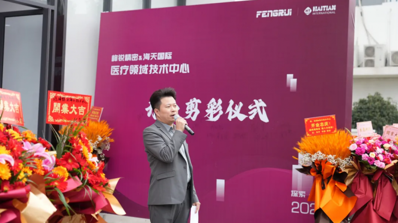 開業慶典上,海天國際與峰銳精密的高層領導齊聚一堂。海天塑機全球行業線副總經理徐斌、峰銳精密總經理陳林,代表雙方企業上臺致辭,表達了對未來合作的期待與信心。他們強調,蘇州醫療技術中心的成立,不僅是對醫療注塑領域深度探索的重要布局,更是雙方共同推動行業發展的有力證明。