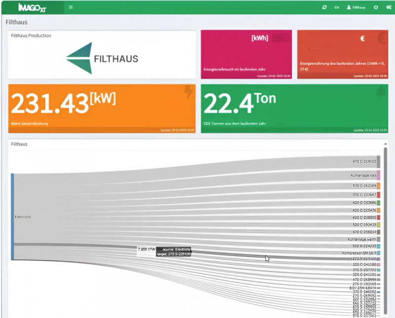 Filthaus 正在逐步挖掘這種新獲得的透明度所帶來的潛力。“iMAGOxt 幫助我們優化生產流程,持續提升生產效率”,Stefan Filthaus 解釋道,“我們根據 iMAGOxt 的分析結果指定了非常具體的行動方案。”檢測到像之前提到的生產單元在待機時的能耗過高,只是眾多案例中的一個。