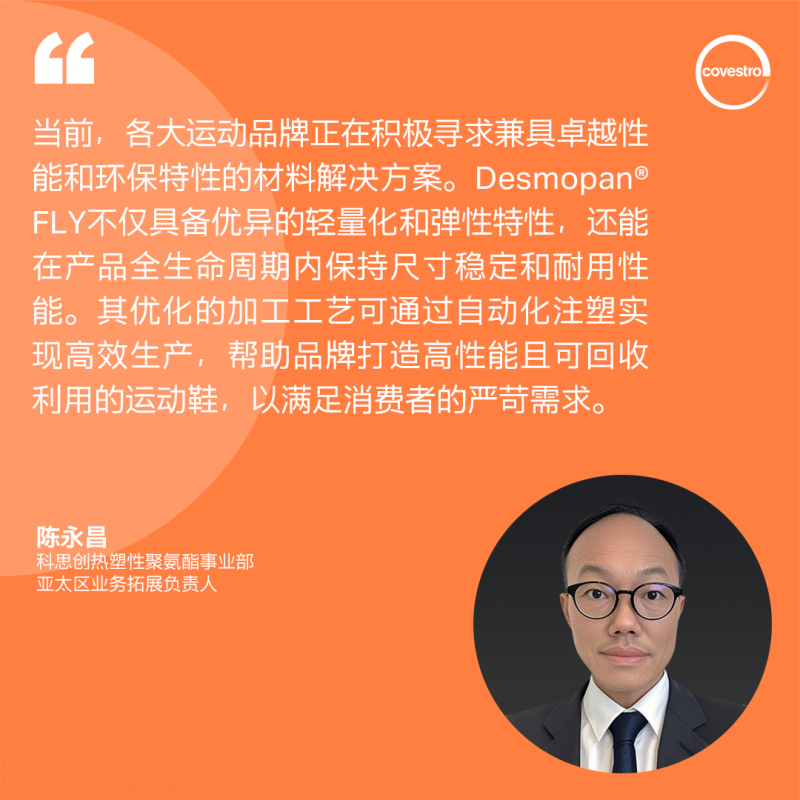 在科思創全方位技術能力和先進研發設施的支持下,Desmopan FLY現已正式上市。公司通過這一材料與技術整合方案,賦能運動品牌開發出兼顧性能、可持續性和生產效率的先進鞋類解決方案。