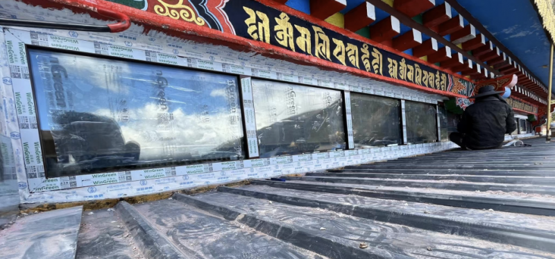 值得一提的是,巴斯夫此次特別攜手合作伙伴溫格潤Wingreen節能門窗有限公司賦能藏區古剎綠色革命。雙方也在佐欽大圓滿寺里共同見證了聯合研發的聚氨酯高密度硬泡隔熱窗框安裝啟動儀式。該產品作為新一代門窗隔熱解決方案,凝聚了前沿科技與創新工藝:溫格潤運用實芯澆注一體成型大斷橋技術,以僅75mm的極窄框體,實現低至0.8W/K的傳熱系數,成功通過德國PHI被動房認證的嚴苛考驗,目前已在全國不同氣候區域的超低能耗建筑中廣泛應用。