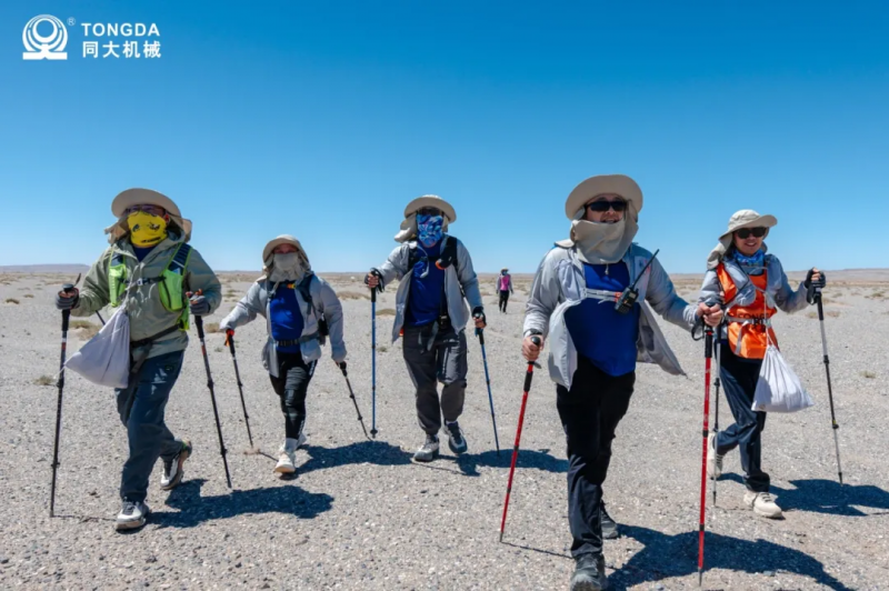 戈壁灘上的風沙似歷史的訴說,輕撫過每一寸土地,也見證著工業制造人將產線上的默契移植戈壁——有人主動退居隊尾守護落后者,有人用手杖做牽引為隊友支撐體力,有人分享的榨菜干糧,無一不是在碧藍的天空下交換的人生故事。當對講機傳來"全員間距不超過100米"的指令,這支曾由獨立個體組成的隊伍,已然蛻變為精密咬合的齒輪組。玄奘孤身求法的傳說仍在耳畔,而同大機械的團隊用現代工業制造人的方式,在相互支撐中完成了對千年戈壁精神的傳承。