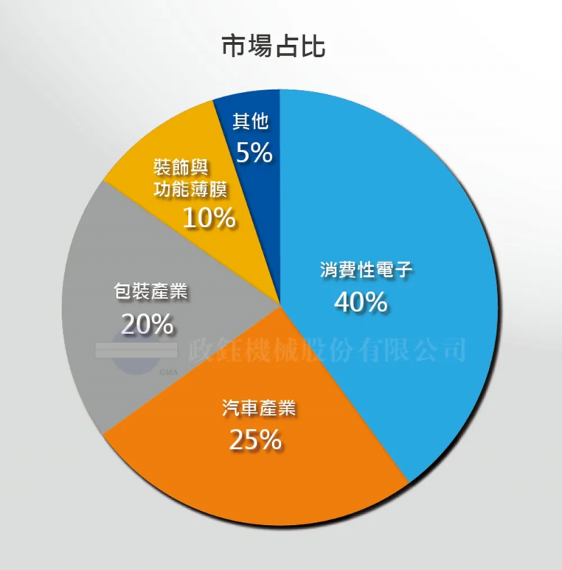 包裝產業則以應用在電子、食品上的阻隔膜、防偽標簽等。