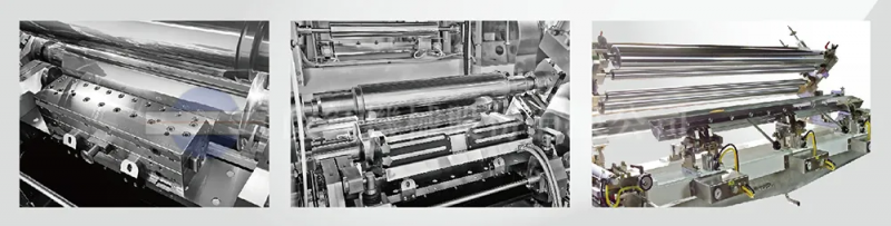 卷對卷涂布設備因應市場端應用需求,通常會使用具有兩種以上涂布方式的涂布座設計,可以因應不同的膠料、涂布厚度使用不同涂布方式,可以有效節省生產成本與時間。舉例來說,狹縫式模具、逗號輪以及微凹綜合涂布座,應用于電極片涂布時,狹縫式模具能夠達成均勻薄膜(10-50um),逗號輪則會用于較厚的涂布層,微凹可用于隔離層或功能性涂布;如果用在PPF制程,狹縫式模具可用于保護層達成超薄厚度以及高光學透明度,中間隔離層則可考慮使用微凹涂布,壓敏層(PSA)則可以用逗號輪涂布,形成較厚的涂層,兼顧黏著力以及重復黏貼需求。