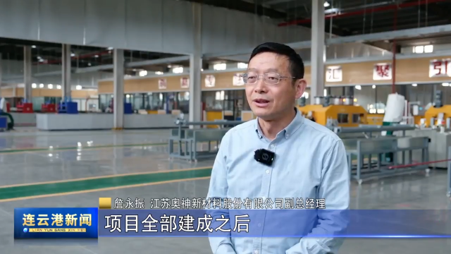 詹永振-江蘇奧神新材料股份有限公司副總經理:主要是復合材料生產線,這邊的車間3主要是拉擠生產線,生產的是比如說建材輕量化的,復合材料的型材、板材之類的,車間4會生產一些卷材,就是可以做成薄板,或者說做成類似于復合材料板一樣的東西,能滿足市場上建材輕量化的使用要求。
