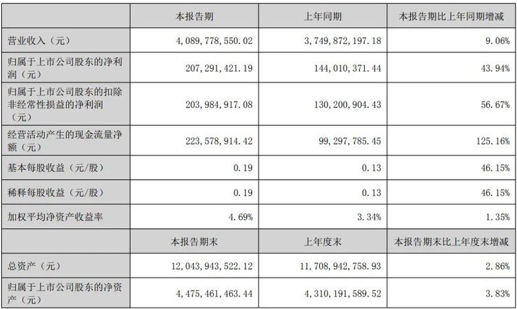 根據公司2025年半年度報告,上半年實現營業收入40.90億元,同比增長9.06%;歸母凈利潤2.07億元,同比增幅達43.94%,毛利率提升至15.00%,凈利率突破5%。這一增長主要得益于: