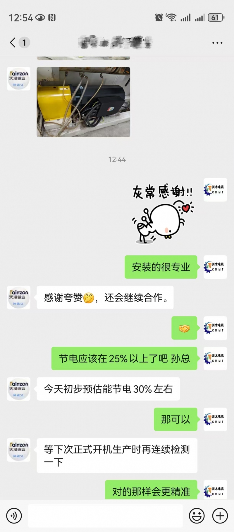 中財集團孫總在反饋中連連稱贊,"初步預估能節電30%左右,待正式開機生產后,我們將進行連續檢測,獲取更準確的數據。"這份發自內心的認可,充分體現了川木電機的卓越性能。