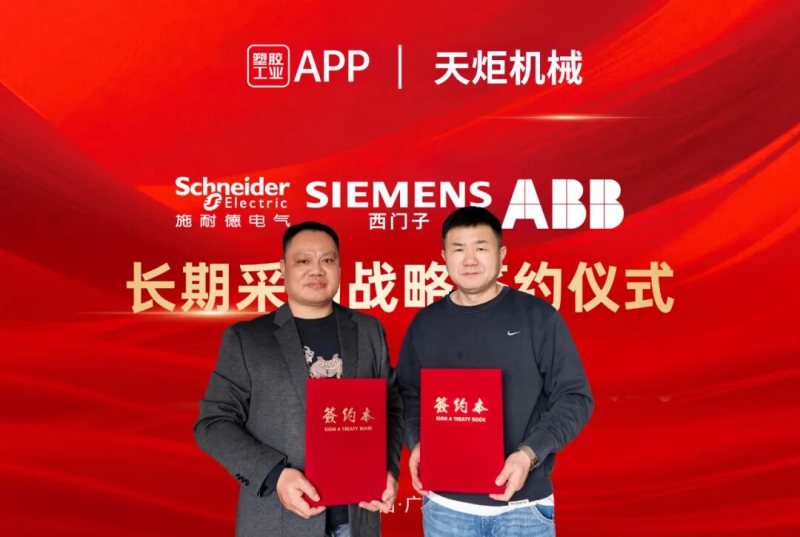 近日,東莞天炬機械有限公司與塑膠工業APP正式達成采購合作,雙方簽署施耐德、西門子等品牌工控電氣產品集中采購協議,開啟供應鏈數字化合作新篇章。