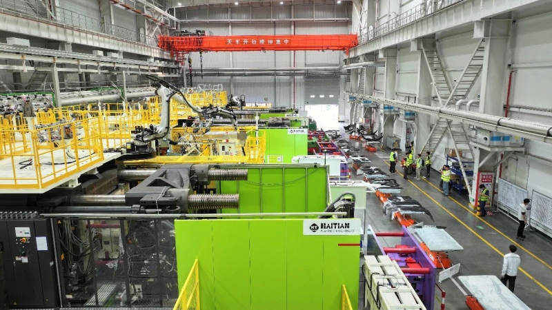 小鵬肇慶基地作為小鵬汽車產能與產業鏈核心,部署了五大工藝車間及眾多智能生產設備,其中樹脂車間可規?;a智能純電動汽車保險杠類產品。海天設備的入駐,將進一步完善基地樹脂件生產配套能力,肩負起塑造智能座駕“第一印象”、守護出行安全的關鍵使命,助力保險杠生產效率與產品品質雙提升。