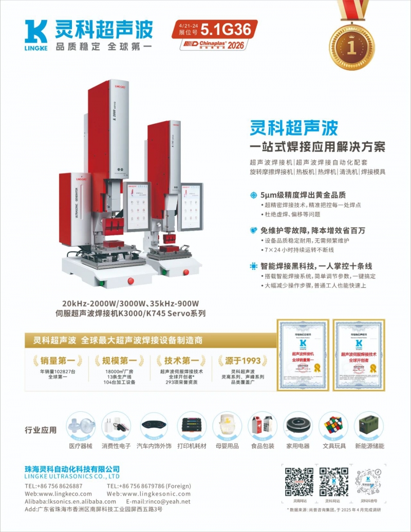 來源:靈科超聲波   編輯:塑膠工業   瀏覽次數:10656  發布時間:2026年04月09日 17:06:45