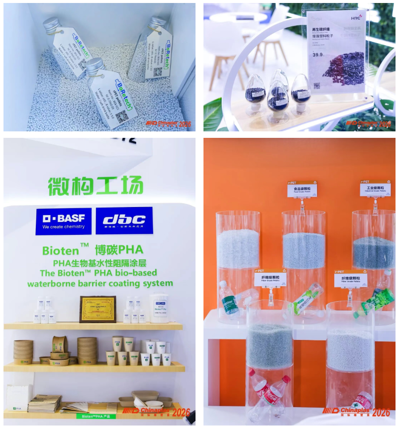 在展會的原材料專區,尤其是再生塑料專區及生物塑料專區,消費后及透過化學回收法(化學解聚、熱裂解、酶解回收法等)生產的再生料、可追溯合規的車用閉環材料、生物可降解材料、高性能生物基材料、低碳改性材料等綠色產品層出不窮,全方位展現行業綠色轉型成果。
