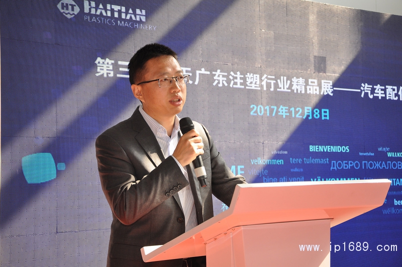 海天塑機集團珠江三角洲區域總經理海天廣州公司副總經理徐海輝先生為我們介紹了現在海天在華南市場的汽車配件行業和海天注塑機在華南的使用情況,很多是有兩板機和全電機,海天曾經提出過 “ 小機全電化,大機兩板化 ” 的戰略。