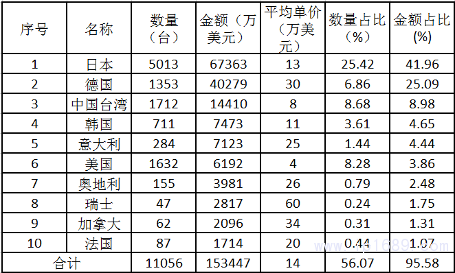 按貿易產品細分,2017年1~11月我國進口注塑機6671臺、金額6.82億美元,分別同比增長44%、40%;進口擠出機1037臺、金額3.35億美元,分別同比增長34%、13%;進口吹塑機251臺,金額1.49億美元,分別同比增長29%、22%。