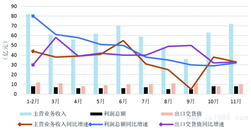圖1 2017年1-11月我國塑料機械制造工業主要經濟指標走勢