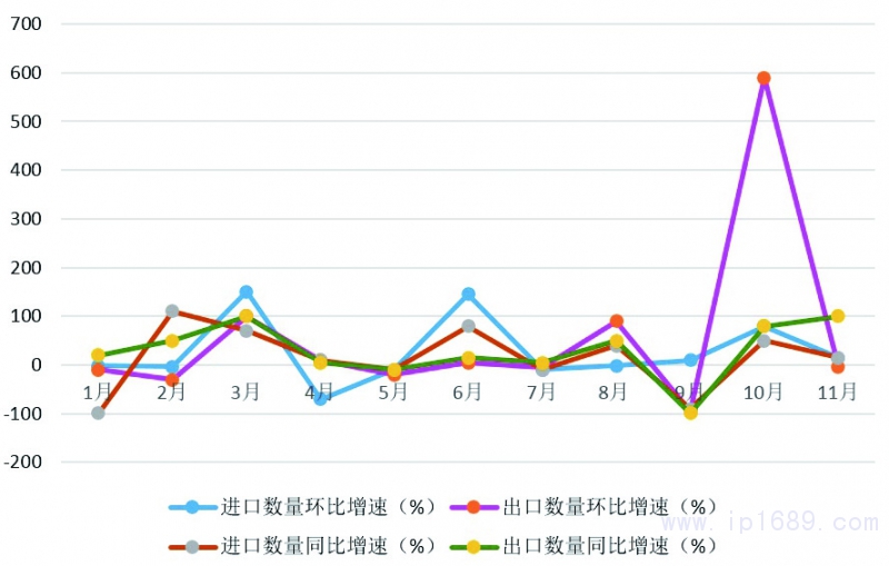 圖2 2017年1-11月我國塑機進出口數量增速走勢