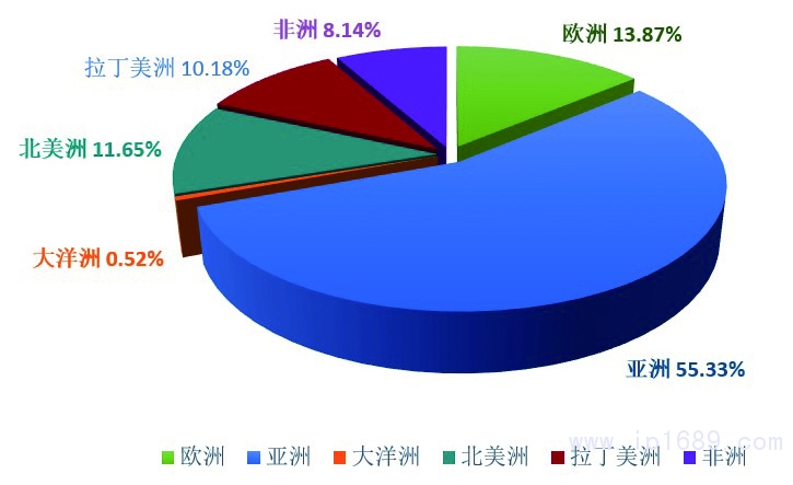 圖6?2017年1-11月我國塑機出口金額洲際分布
