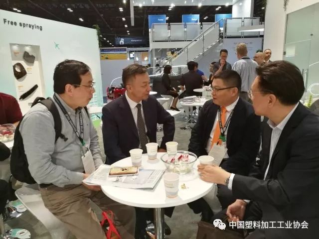 朱文瑋理事長、王占杰副理事長兼秘書長等代表團成員先后走訪了上百家參展企業,了解國內外塑料行業相關新材料、新產品、新裝備的最新技術及發展情況。