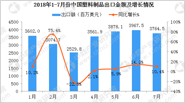 2018年1-7月中國塑料制品出口數據分析:7月份出口量同比增長7.3%