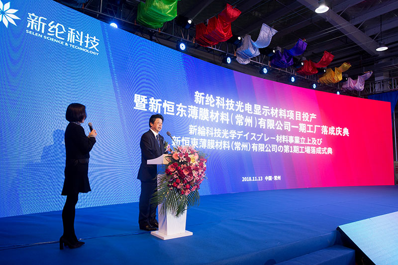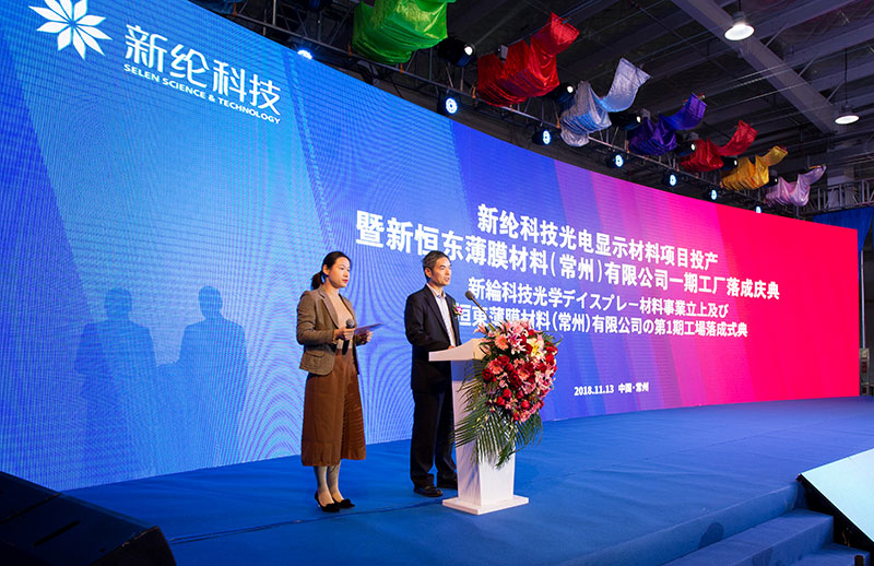 11月13日上午,新綸科技(股票代碼:002341)舉行新綸科技光電顯示材料項目投產暨新恒東薄膜材料(常州)有限公司一期工廠落成慶典。