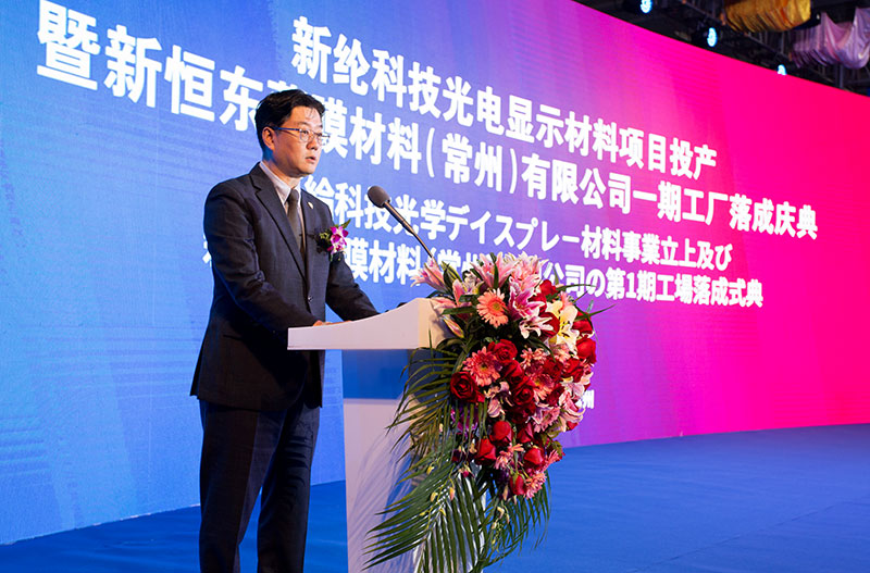 日本東麗株式會社井上治專務取締役參加慶典并致辭,井上專務對新綸高層高瞻遠矚、放眼未來,投資光電顯示材料領域,引進海外先進技術、組建日本運營團隊的戰略眼光給予了高度的肯定。未來也將持續助力新恒東的發展,堅信新恒東未來將成為光電顯示材料世界No.1的涂布工廠。