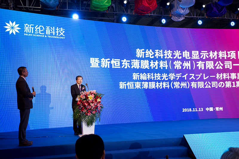 深圳市盛波光電科技有限公司樂坤久監事長、東洋紡株式會社鈴木技術顧問參加了本次慶典并分別致辭,表達了對新綸科技的美好祝愿,預祝新綸科技光電顯示材料事業蒸蒸日上,早日實現成為世界No.1的夢想。