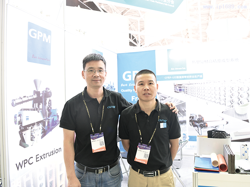上海國塑總經理林永宏(左)與同事合影