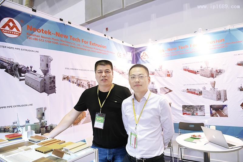 眾捷塑料機械董事長-鮑燕軍(左)與外貿陳經理(右)合影