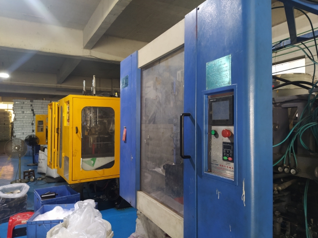 亞圣除了4臺今雋吹瓶機外,還引進了12臺陽鑫注塑機,搭配天銳機械手使用。