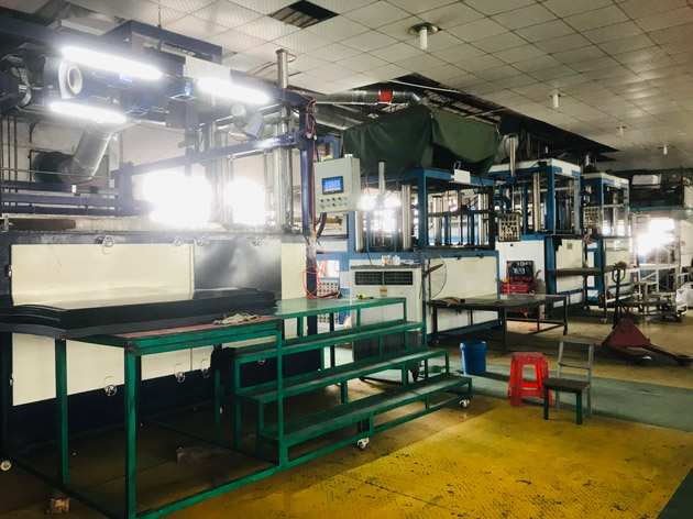 亞美鑫引進2臺塑膠板材機擠出,多臺臺灣2100CNC模具加工設備、進口五軸CNC,18臺厚板自動吸塑機。