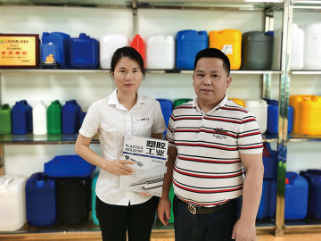 走進東莞長盈塑膠制品有限公司(以下簡稱“長盈”),一排排綠色的塑料化工桶陳列在眼前,旁邊擺設著一臺貝克威爾吹塑機,一臺泰龍破碎機,工人們正在有條不紊地抓緊生產,為出貨做準備。