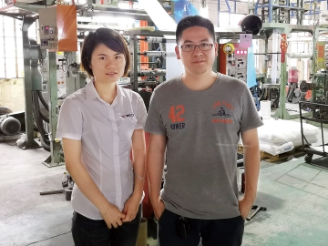 一進入東莞溢鑫整潔的廠房,但見3條蘇州金緯的PET片材生產線在忙碌地擠出寬約1米的大塊膠片,每條生產線都由3位普工加1位開機師傅組成的班組在有條不紊地操作著。