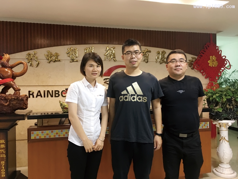 彩虹塑料市場經理王軍(中)與《塑膠工業》雜志社發行部同事(左)合影