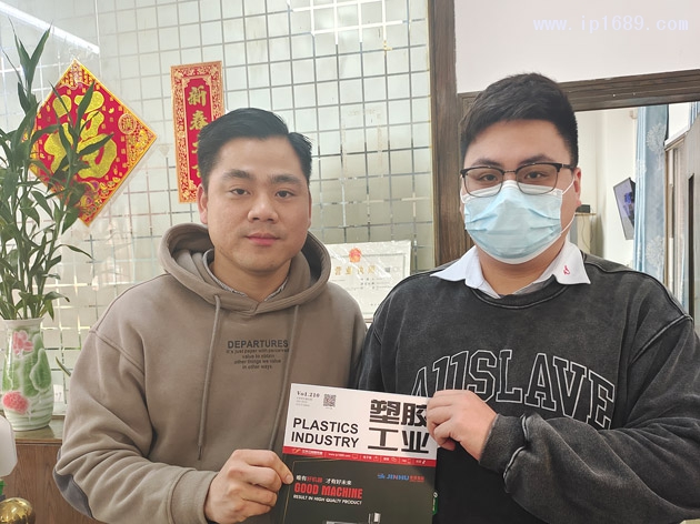 佛山市禪城區江南塑料廠梁經理(左)與塑膠工業發行部(右)